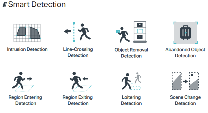 a inteligentní detekci pohybu - vstup do oblasti, překočení čáry, vniknutí a další.