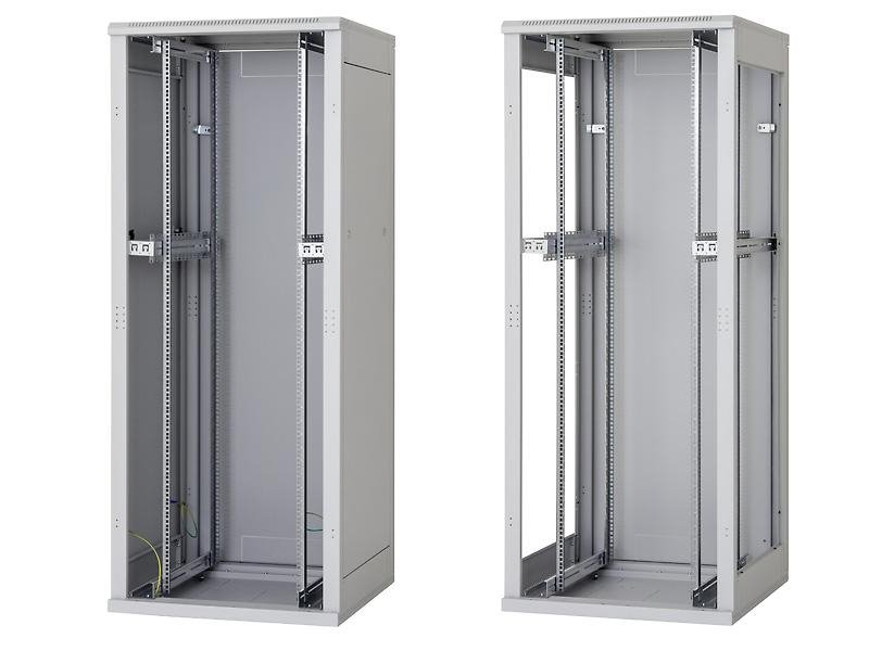 Rozebíratelný rozvaděč s krytím IP20, nosnost 400 kg. Svařované části jednoduše spojitelné šrouby. Dveře skleněné s bezpečnostním tvrzeným sklem 4 mm.