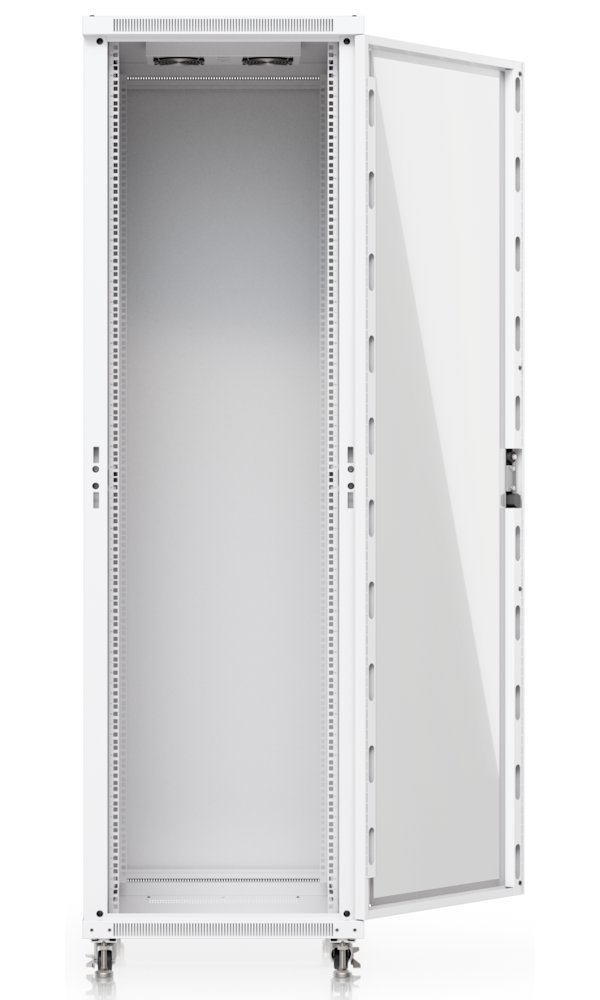 Profesionální 42U serverový rack s prosklenými dvermi a šírkou 800 mm. Robustní ocelová konstrukce s nosností až 800 kg, vestavené ventilátory, odnímatelné bocní panely, zajištení proti pohybu pomocí brzd i vyrovnávacích patek.Více info