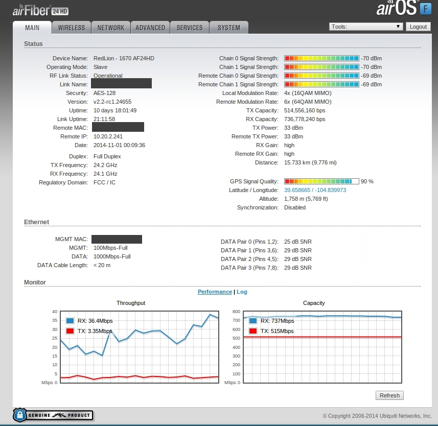 Pro bezproblémový monitoring a nastavení slouží v jednotce 2 ethernetové porty, z nichž jeden je určen pouze pro management a druhý na data + management.