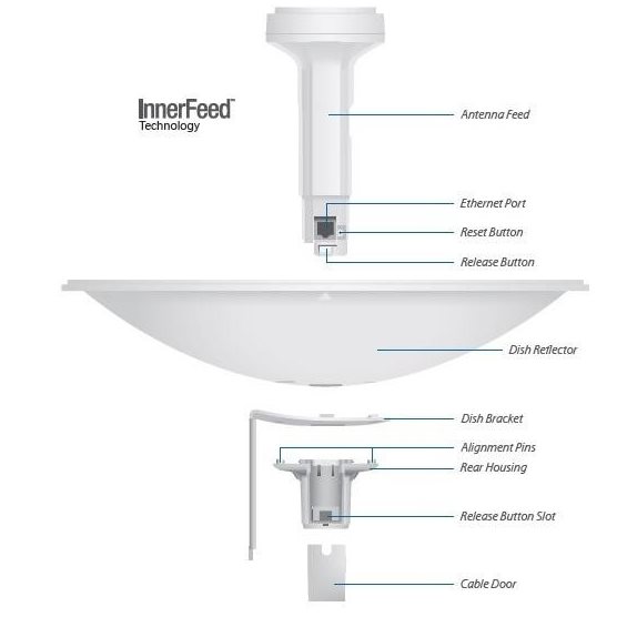 InnerFeed™ technologie integruje rádiovou část do zářiče od antény čímž odpadá potenciální ztráta na RF kabelu.
