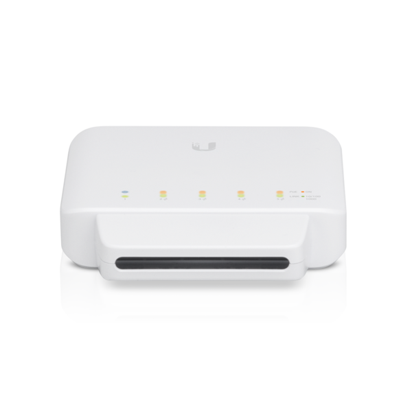 Jednotka USW-Flex je 5-ti portový manažovatelný PoE switch, Layer 2 Gigabit s auto-sending 802.3ad PoE. Switch je vybaven jedním PoE In pro napájení a čtyřmi PoE porty, až 15W výstup pro napájení přístupového bodu nebo dalších PoE zařízení.