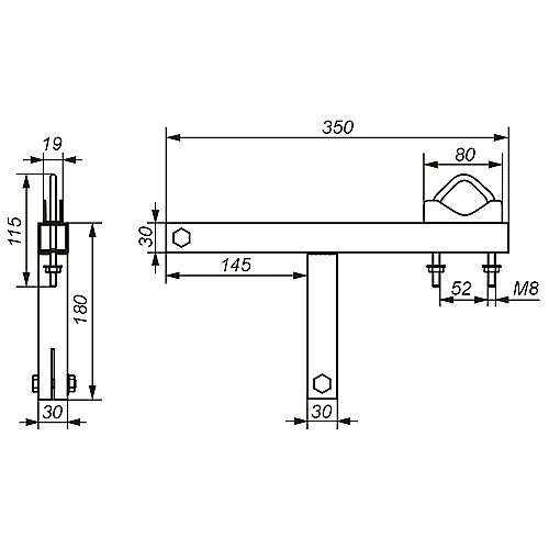 Objímka se zesíleným profilem. Možnost montáže velkých anténních konstrukcí nebo SAT disk ke komínu.