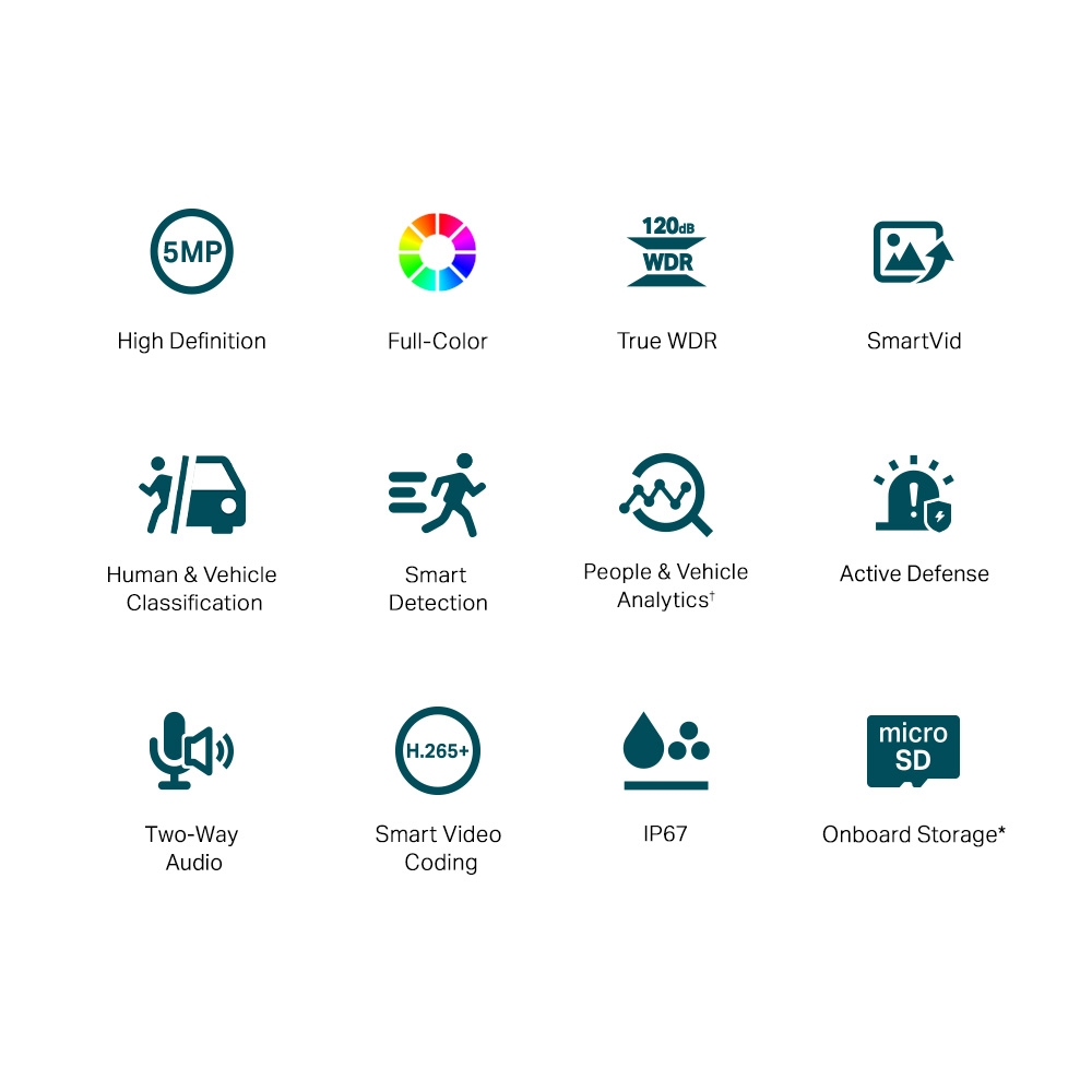 IP kamera venkovní, rozlišení 5 Mpix, ohnisko 6 mm, noční vidění do 30 metrů, přísvit bílým světlem (do 30 m), barevné noční vidění, chytrá detekce osob / pohybu, klasifikace osob / vozidel. Rozhraní: LAN s podporou PoE, slot pro paměťové karty. Krytí IP67. Kamera VIGI přináší křišťálově čistý obraz. Umožňuje sledování s jasnými a živými detaily 24 hodin denně. Navíc, tato kamera je dokonce schopna poskytovat kvalitní obraz i během noci. To je zásluha kombinace objektivu s velkou clonou, vysoce citlivého snímače a připojených doplňkových světel, které zajišťují, že obraz zůstává barevný i při nízkém osvětlení. Dalším důležitým prvkem je maximální rozlišení 5 MPx, které tato kamera nabízí. To znamená, že dokáže zachytit i ty nejjemnější detaily, čímž vám poskytuje kompletní a detailní přehled o tom, co se děje v dané lokalitě. *Vysoké rozlišení *Plnobarevné noční vidění (Full-Color) *Rozlišení osob a vozidel *Inteligentní detekce *Integrovaný mikrofon *Chytré kódování videa Kamera VIGI s podporou algoritmů umělé inteligence nabízí inteligentnější detekci. Budete dostávat upozornění, když někdo překročí hranici, vstoupí do nastavené oblasti, překáží kameře nebo odstraní/opustí objekty. *Detekce pohybu *Detekce neoprávněného vniknutí *Detekce odstranění předmětu *Překročení hranice *Neoprávněná manipulace s kamerou *Detekce opuštěných objektů https://www.tp-link.com/cz/business-networking/vigi-network-camera/vigi-c350/v1%20(6mm%20lens)/