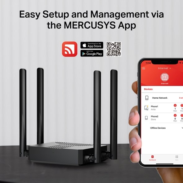 S dvoupásmovým Wi-Fi 6 routerem MERCUSYS MR62X od TP-Link si zajistíte rychlé a chytré připojení. Rychlosti Wi-Fi 6 dosahují až 1,5 Gb/s (1 201 Mb/s v pásmu 5 GHz a 300 Mb/s v pásmu 2,4 GHz). Zahrajete si online hry a streamujete obsah v kvalitě 4K bez prodlev a přerušování. Jednotka podporuje technologie OFDMA a MU-MIMO pro posílení vaší WiFi sítě. Umožňují více klientům přenášet data současně.