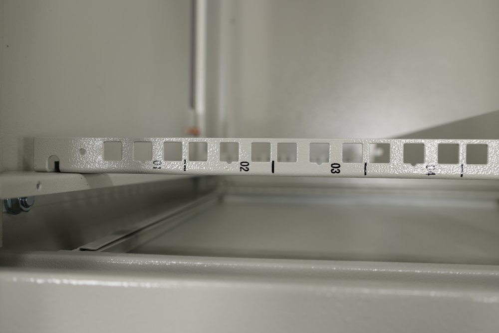 • součástí rozvaděče jsou čtyři posuvné vertikální lišty s perforací pro uchycení instalovaných zařízení