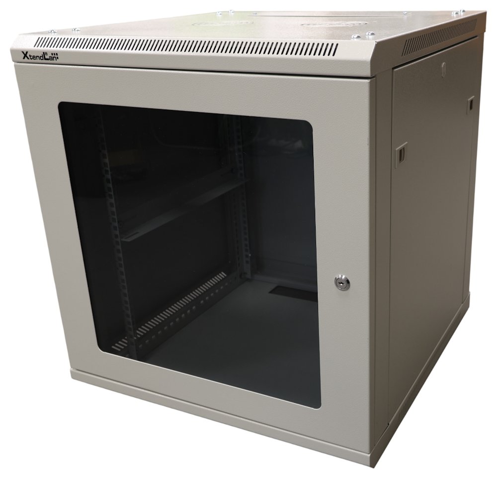 (Registrace)XtendLan 12U/600x600, na zeď, jednodílný, složený, skleněné dveře, šedý-osobní odběr,bez krabice