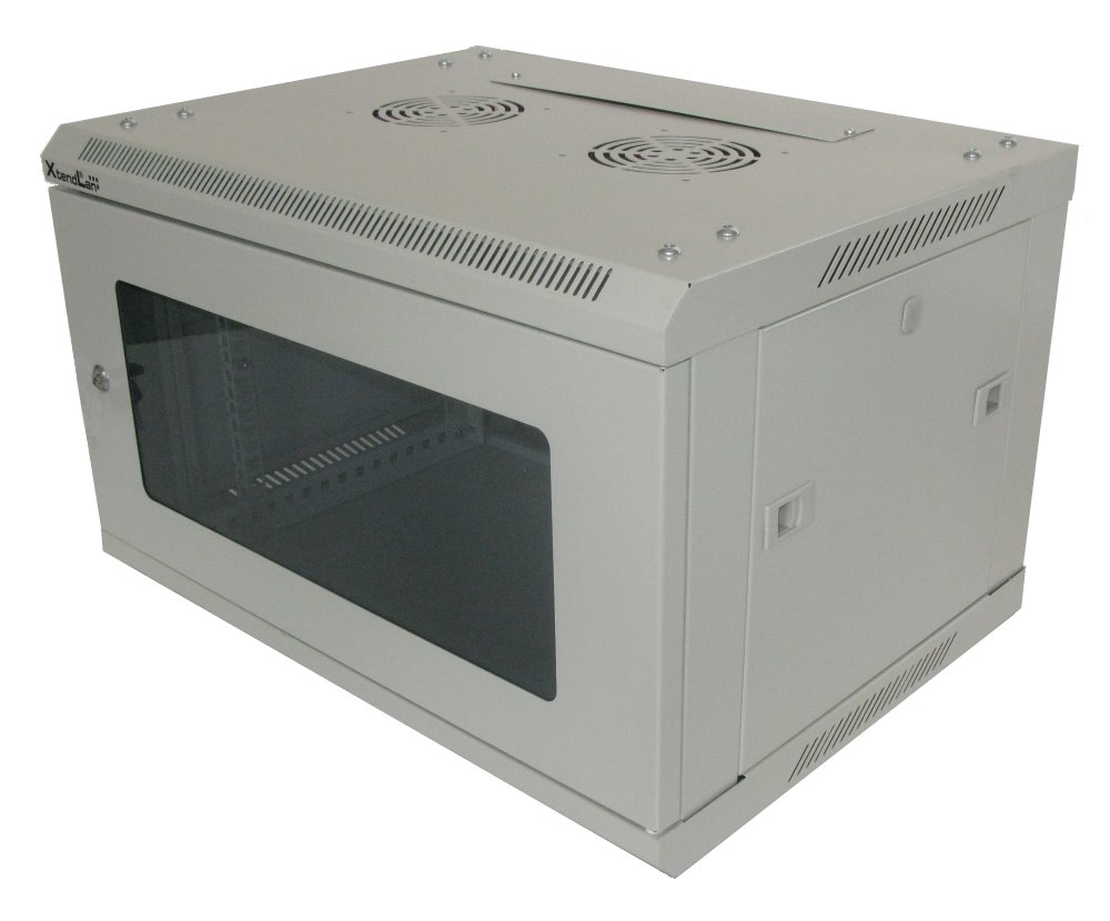 (Registrace)XtendLan 6U/600x450, na zeď, jednodílný, skleněné dveře, slonovina-šedý