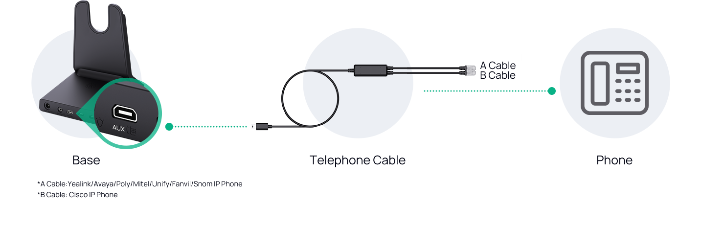 Yealink telefonní kabel pro řady WH63 E2/WH64/WH68 je kompatibilní s běžnými IP telefony.