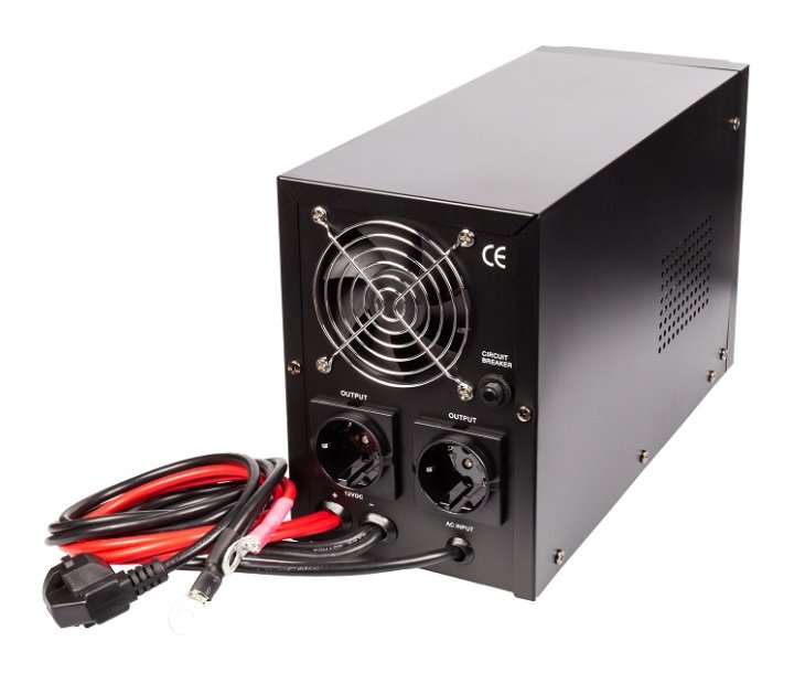 Při napájení ze sítě jsou napájeny připojené spotřebiče přímo ze sítě, externí akumulátor je dobíjen, při výpadku sítě zdroj automaticky přepne na měnič napětí, energie je odebírána z akumulátoru, spotřebiče jsou napájeny z měniče. Po obnovení el. energie zdroj automaticky přepne na síť, začne se akumulátor dobíjet.